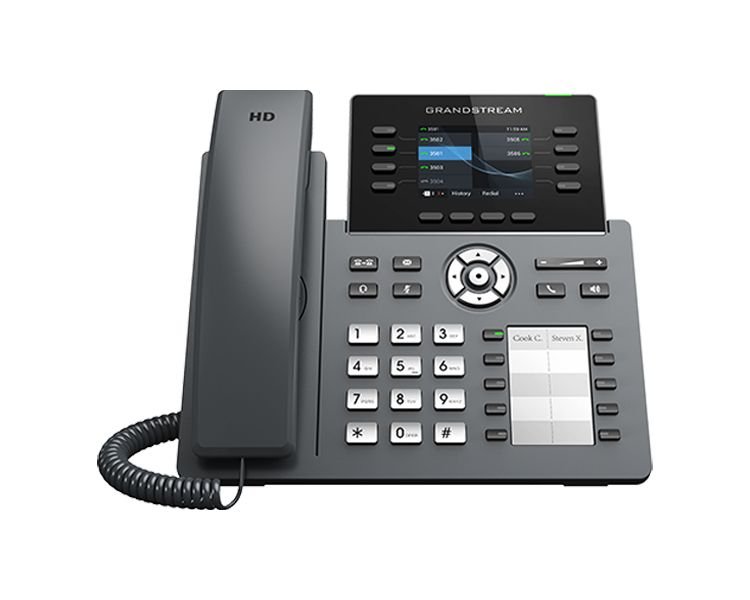 The Grandstream GRP2603P is a feature-rich, carrier-grade IP phone designed for professional environments requiring reliable voice communication. Supporting up to three active lines and six SIP accounts, it offers a user-friendly interface with a 2.7-inch backlit graphical LCD display. The device is equipped with integrated Power over Ethernet (PoE), simplifying installation by reducing the need for separate power adapters.