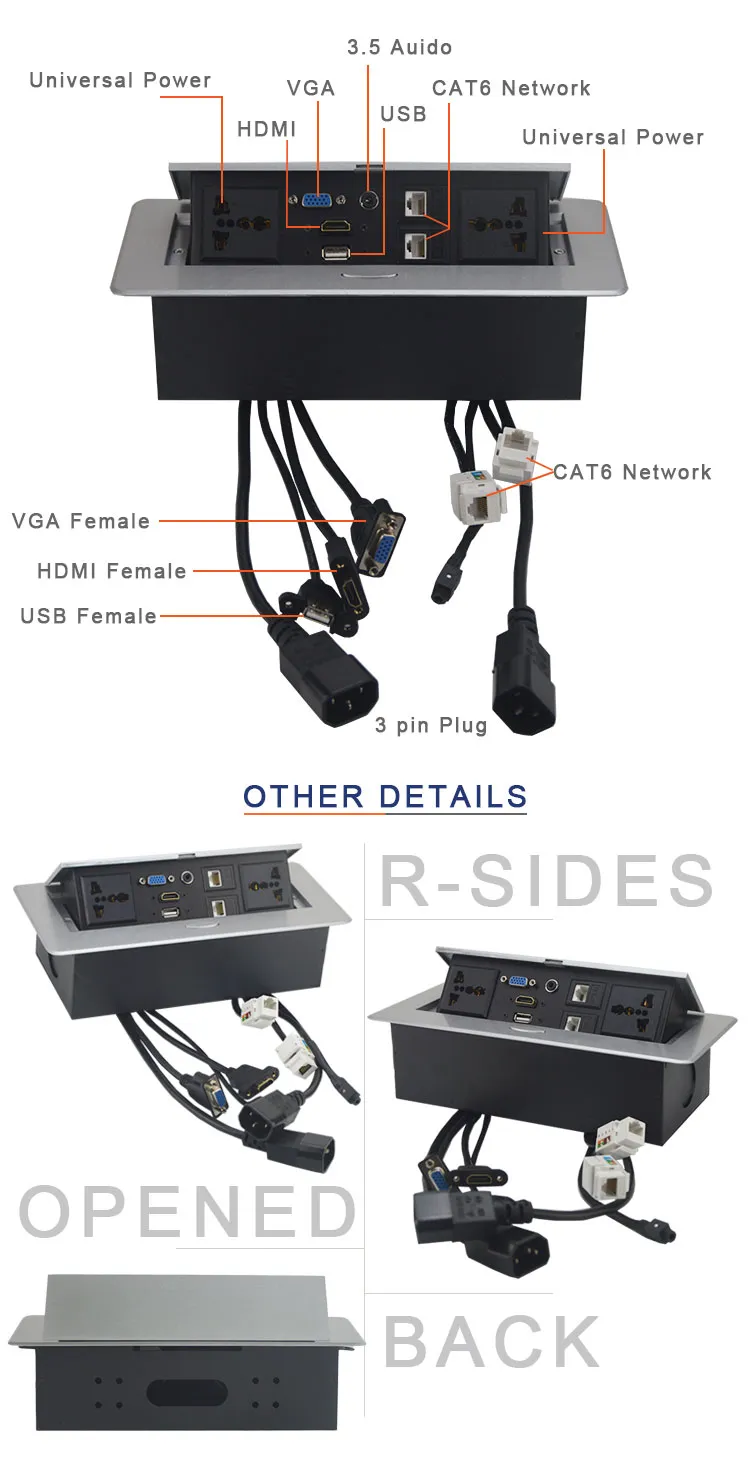 Table top Pop-up Box for Power and Multimedia (VGA, HDMI, USB)